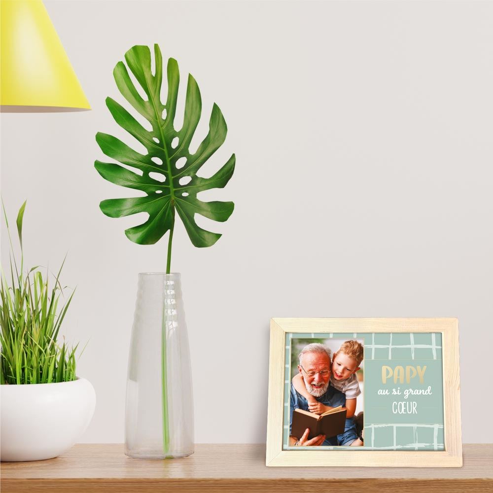 Un cadre photo plein de tendresse pour célébrer le plus adorable des papys 💚 Avec son inscription « Papy au si grand cœur », ce cadre en bois est le cadeau idéal pour lui faire plaisir à l’occasion de son anniversaire, de la fête des grands-pères ou simplement pour lui dire combien il compte. Un joli souvenir à poser dans son salon ou sa chambre, pour garder près de lui ses plus belles photos de famille 🤍