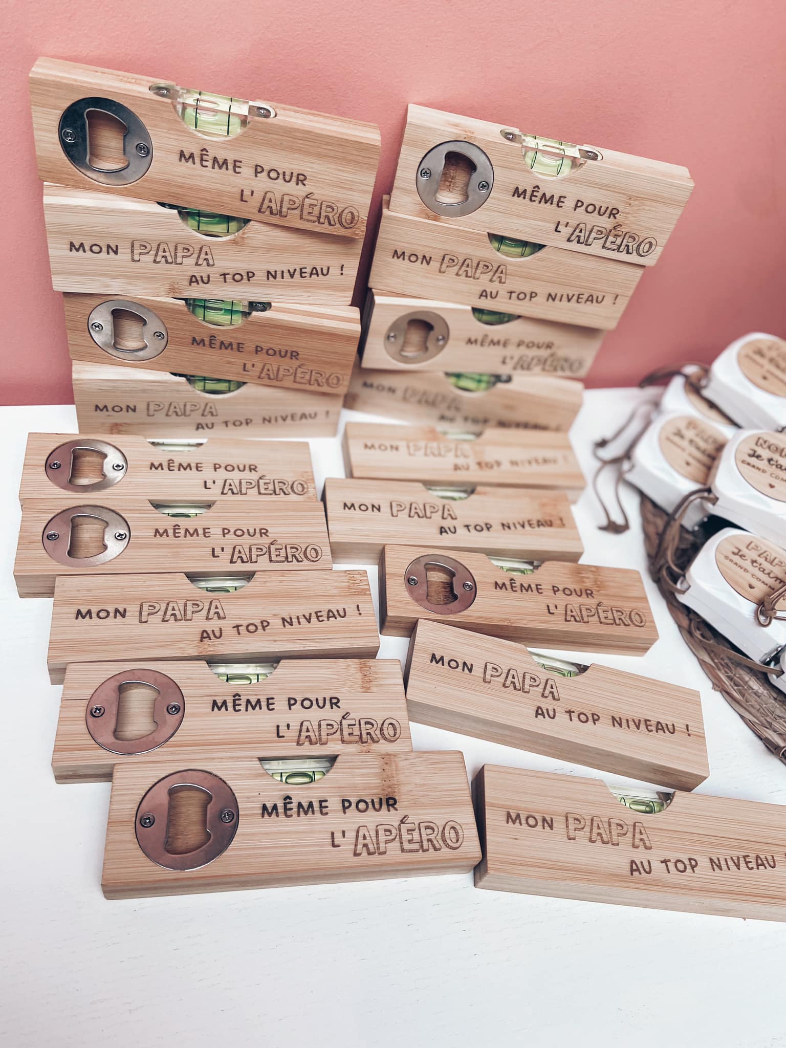 À glisser dans une box spéciale papa, dans un cadeau de départ ou pour surprendre un parrain bricoleur — ce niveau décapsuleur fera son petit effet 🧡