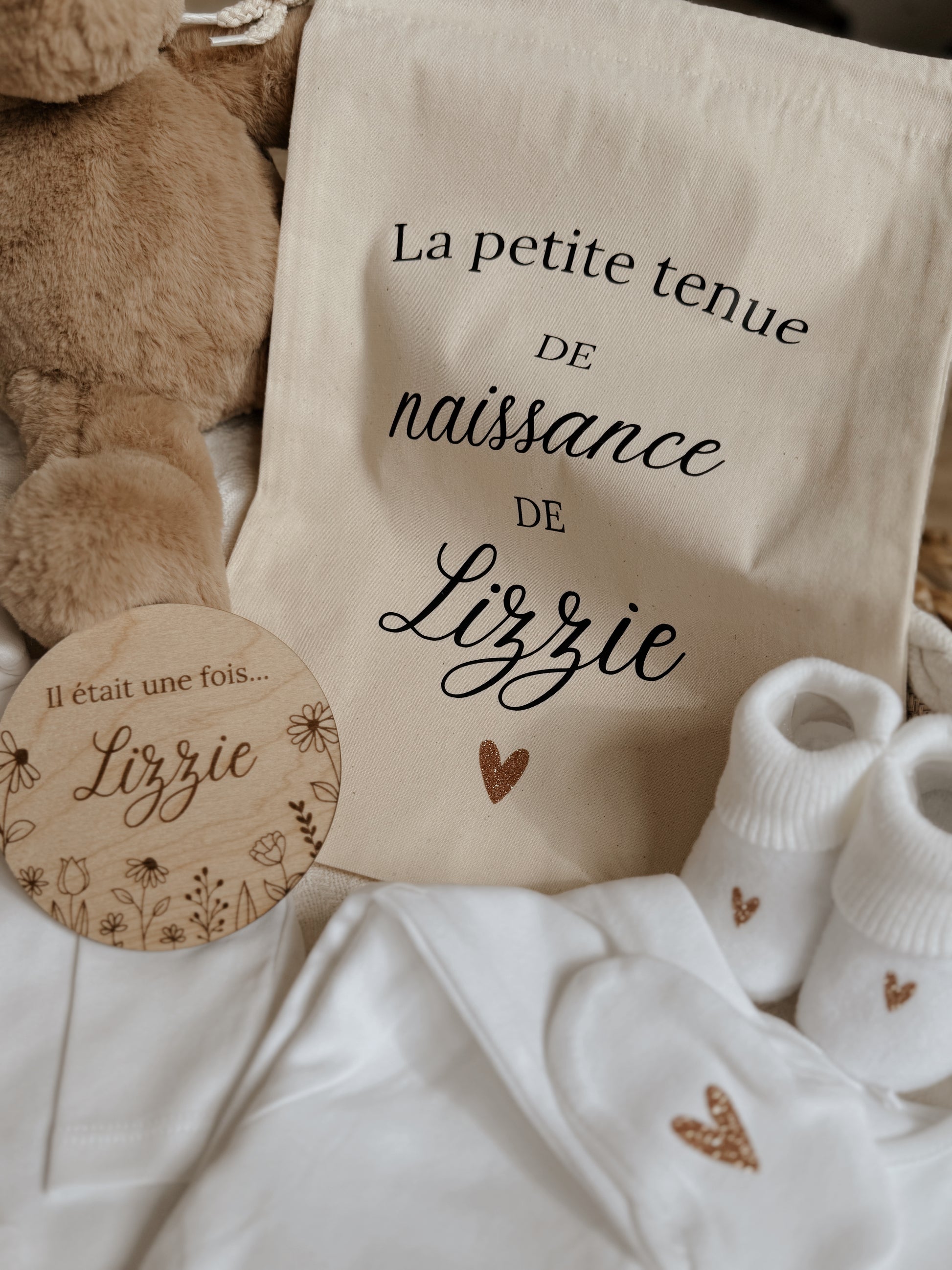 - Texte au choix (ex. : « Ma première tenue », « Petite tenue de rechange »...)