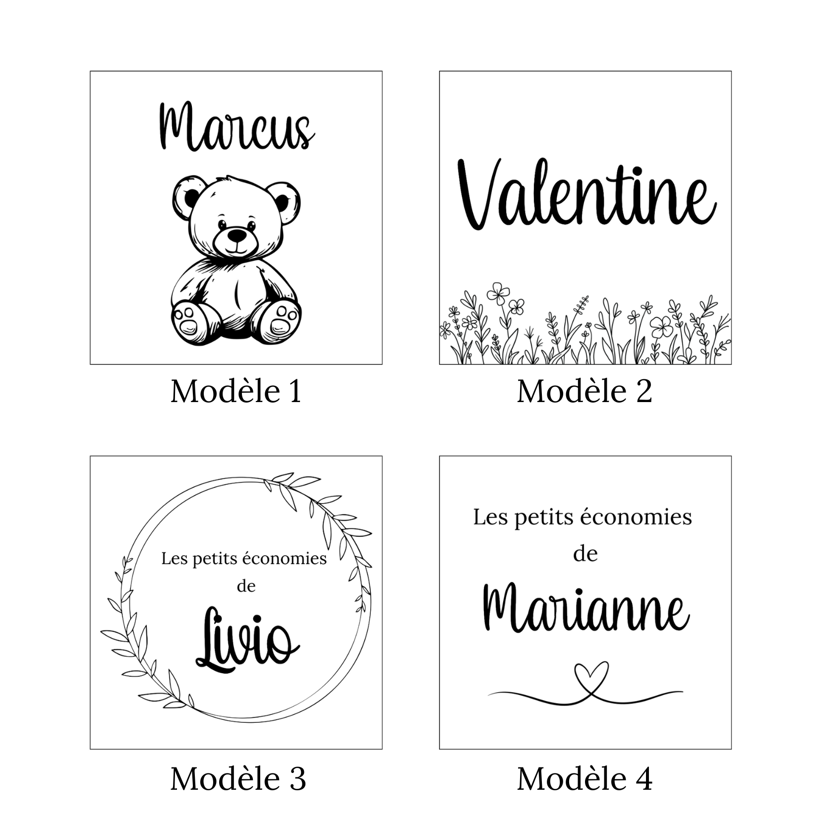 - Texte ou petite phrase personnalisée (ex. : Les trésors de Léo)