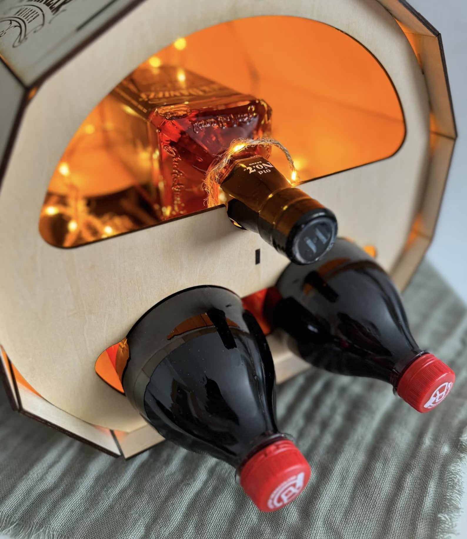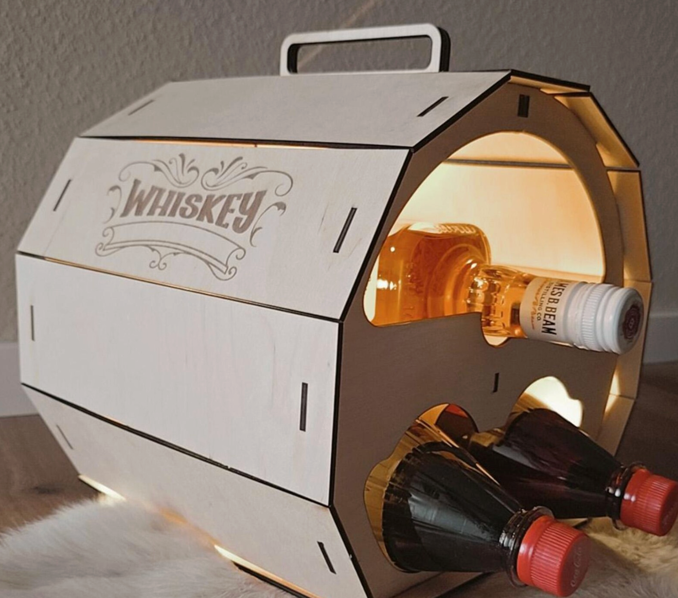 Un fût en bois élégant pour offrir votre boisson préférée à Noël, pour une demande de témoin / parrain ou tout autre événement. Le tonneau accueille 1 bouteille de 70 cl (type Jack Daniel’s) et 2 bouteilles de soda (format standard). Personnalisation de la face latérale incluse 🤎