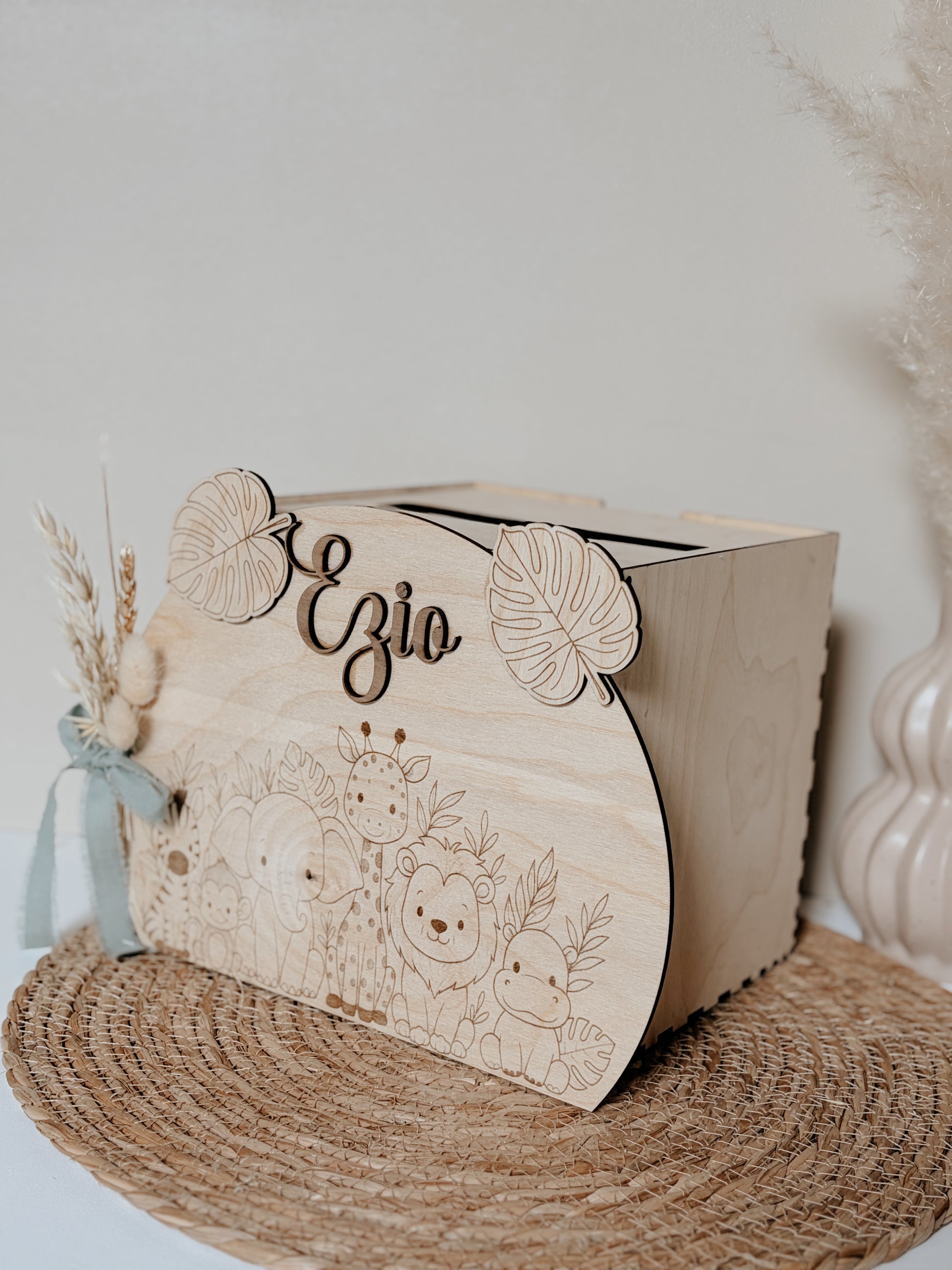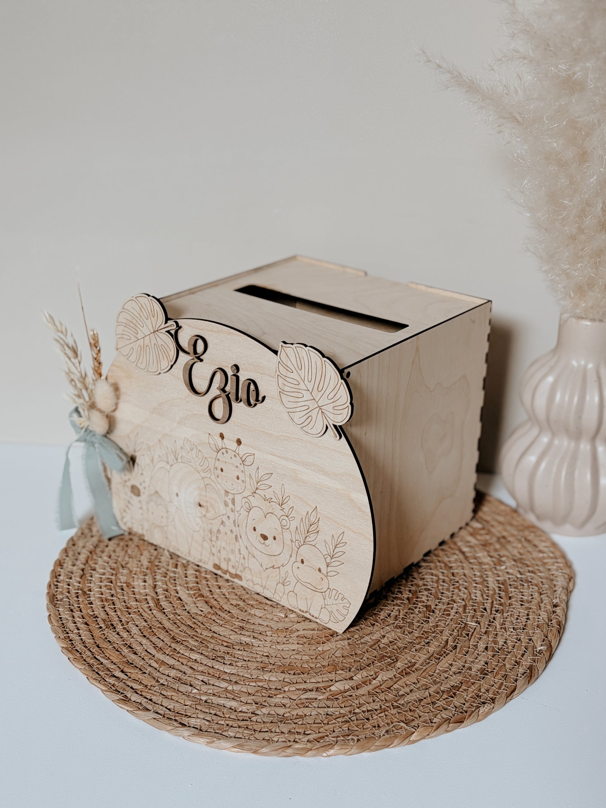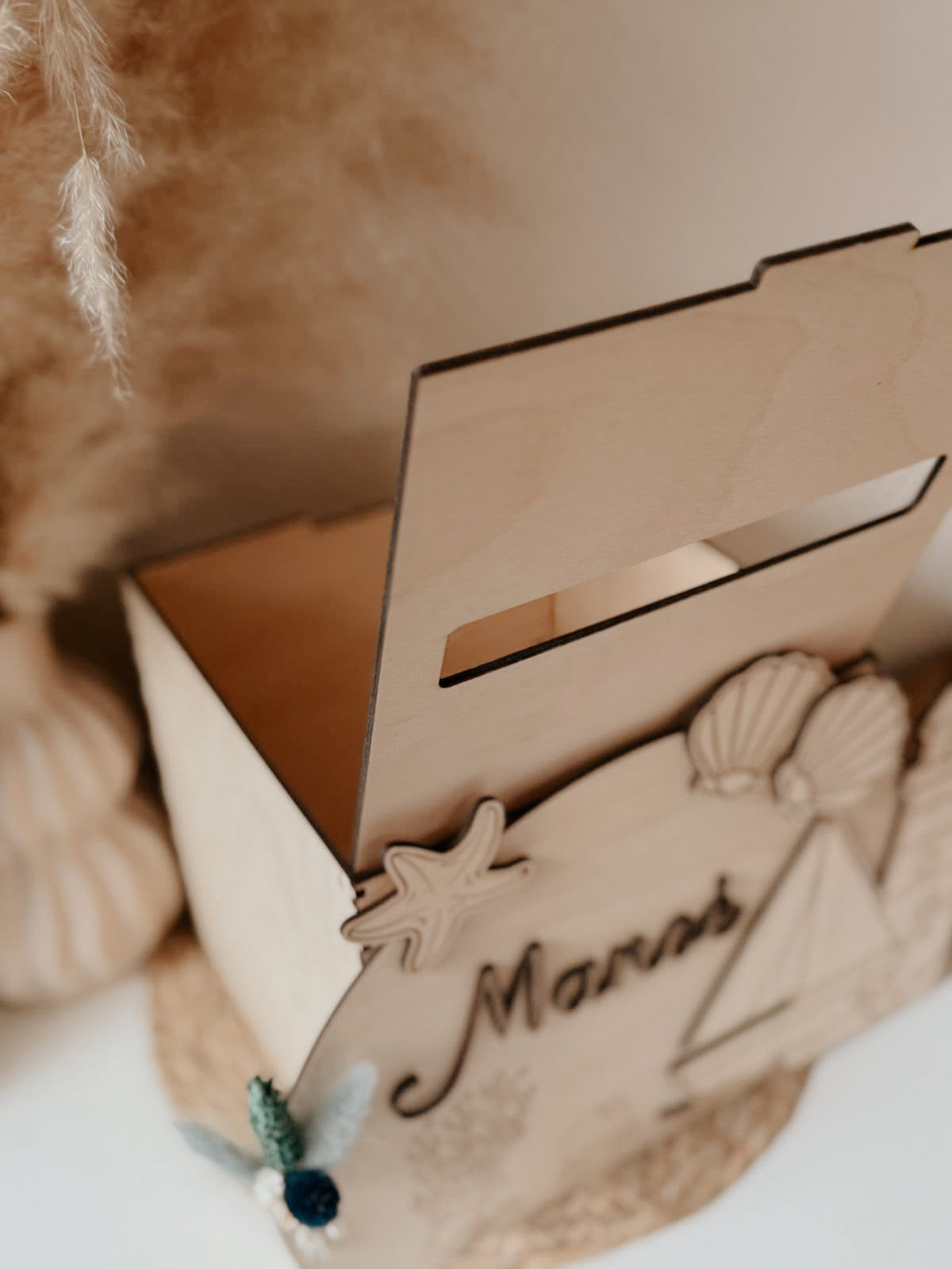 Ces urnes personnalisées en bois sont entièrement réalisées à la main, décorées selon votre thème et vos couleurs. Elles accueillent avec élégance les enveloppes ou petits mots doux lors d’un baptême, d’un anniversaire, d’un mariage ou toute autre occasion spéciale.